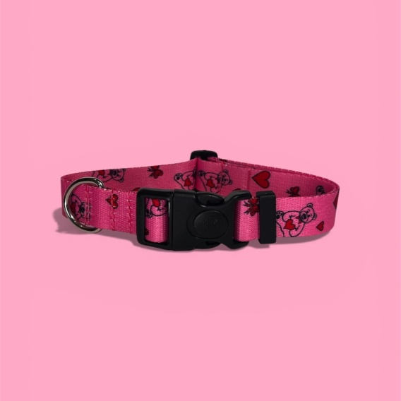 Obrożą ,,Misiowasłodycz'', zachwyca niezwykłym wzorem. Misiowasłodycz to połączenie uroku pluszowego misia z czerwonymi kokardkami i serduszkami. Ten unikalny design sprawi, że Twoje zwierzę będzie wyglądać nie tylko stylowo, ale również uroczo.